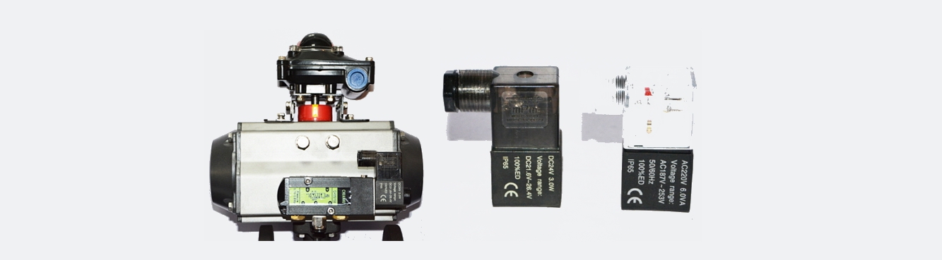 電磁閥用于氣動閥門開啟或關閉的電控操作。 符合NAMUR連接標準, 直接安裝在氣動執行器側面,無需管子連接。根據儀表控制系統需要選擇單電控或雙電控制。二位五通電磁閥配雙作用式執行器,二位三通電磁閥配單作用式執 行器。同時該產品有基本型(IP67)和防爆型,防爆級別為Ex dIIBT4,為防爆級別適用于工廠的易爆環境場所。也可根據需要選擇適合的電壓
